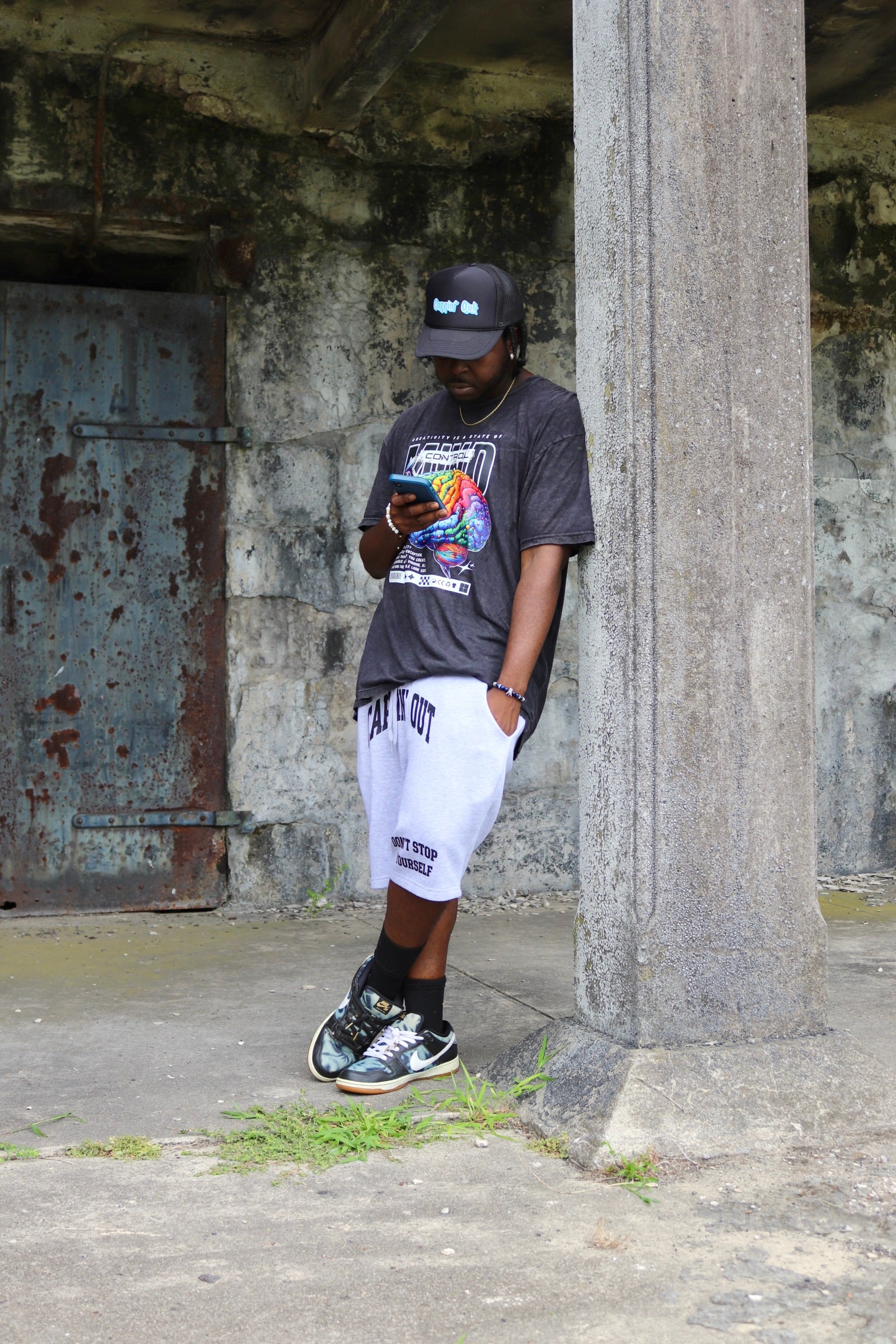 Push boundaries and take control of your mindset. This black vintage wash T-shirt features a striking, colorful brain graphic pierced by a bold nail, symbolizing the tension between chaos and control. The powerful message “Creativity is a State of Mind Control” is printed as a reminder that innovation starts with discipline, not disorder.